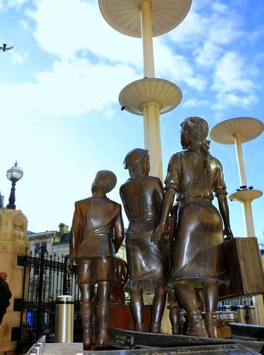 Impossível não se emocionar ao observar a forma que a menina mais nova abraça seu ursinho de pelúcia. Aquele objeto parece um refúgio para aquela criança. E o violino no chão? De cortar o coração. Cada detalhe da belíssima escultura nos remete a várias indagações, a “alma” daquele lugar é viva demais! “The Arrival”, do artista Frank Meisler, é, na verdade, um memorial às dez mil crianças judias que chegaram à Grã-Bretanha, buscando refúgio da tirania nazista em toda a Europa.